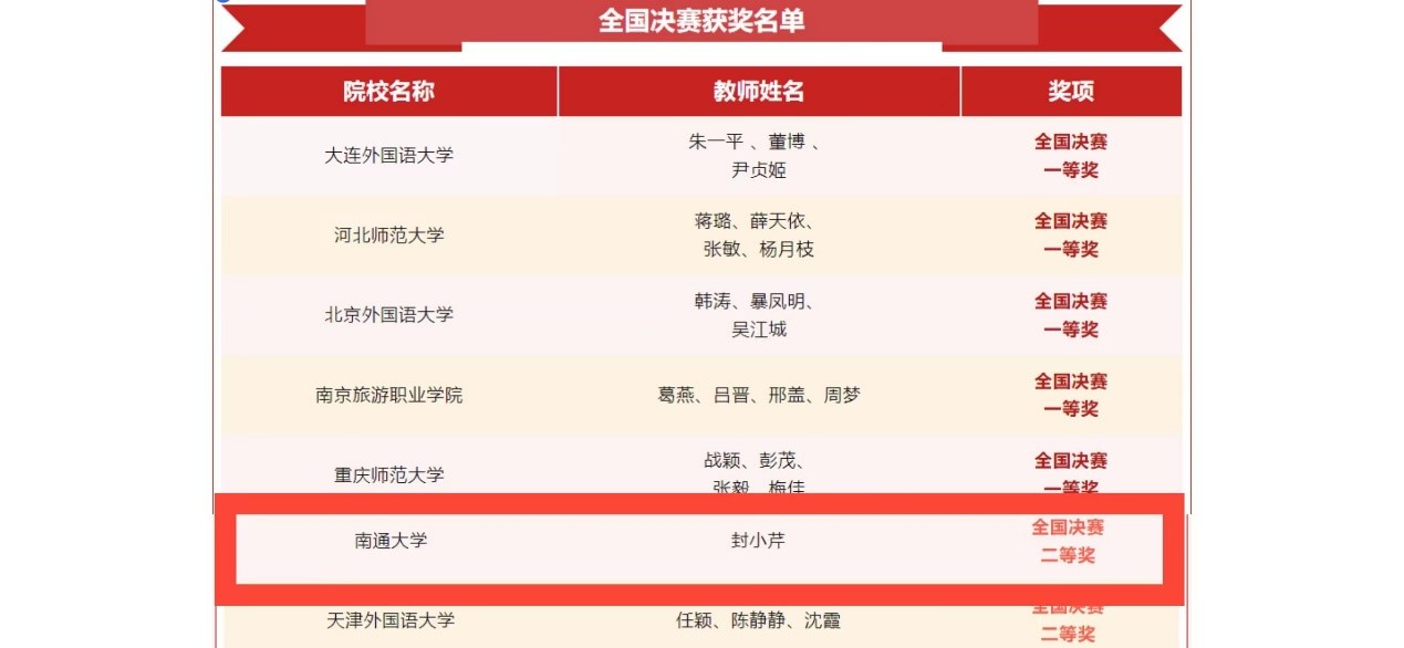 7月25日,2023“外研社杯” 全国高校日语课程思政教学设计大赛(日语专业组)评审结果公布,金沙集团186cc成色教师封小芹的参赛作品获得全国决赛二等奖。
