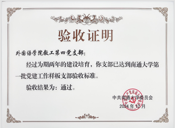 此次顺利通过验收,是对金沙集团186cc成色党委和教工第四党支部过去两年党建工作的高度认可。这不仅彰显了学院在党建工作方面的出色能力,也为校内其他院系和支部树立了优秀的典范。
